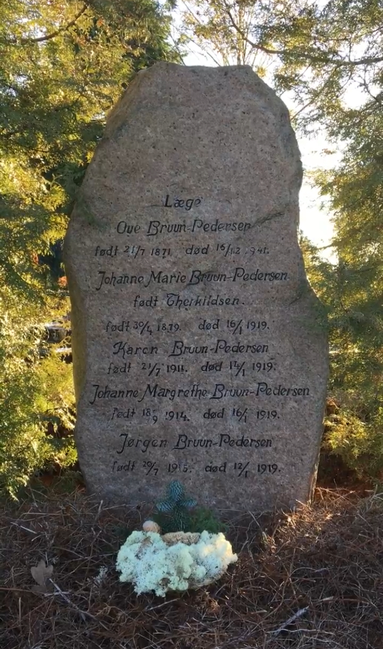 Sådan må lægen Ove Bruun-Pedersen også have oplevet det, da den spanske syge pludselig blev en del af hans privatliv. Epidemien var ikke længere blot en usynlig fjende, som han med sin faglighed og rutine skulle forsøge at tackle efter bedste beskub. Nu var den kommet inden for hans egen families fire vægge, og den viste ingen nåde.